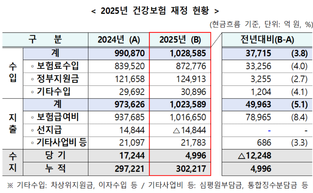 국민건강보험공단은 2025년도 건강보험 재정이 현금흐름 기준으로 4,996억 원의 당기수지 흑자를 기록했다고 28일 밝혔다.