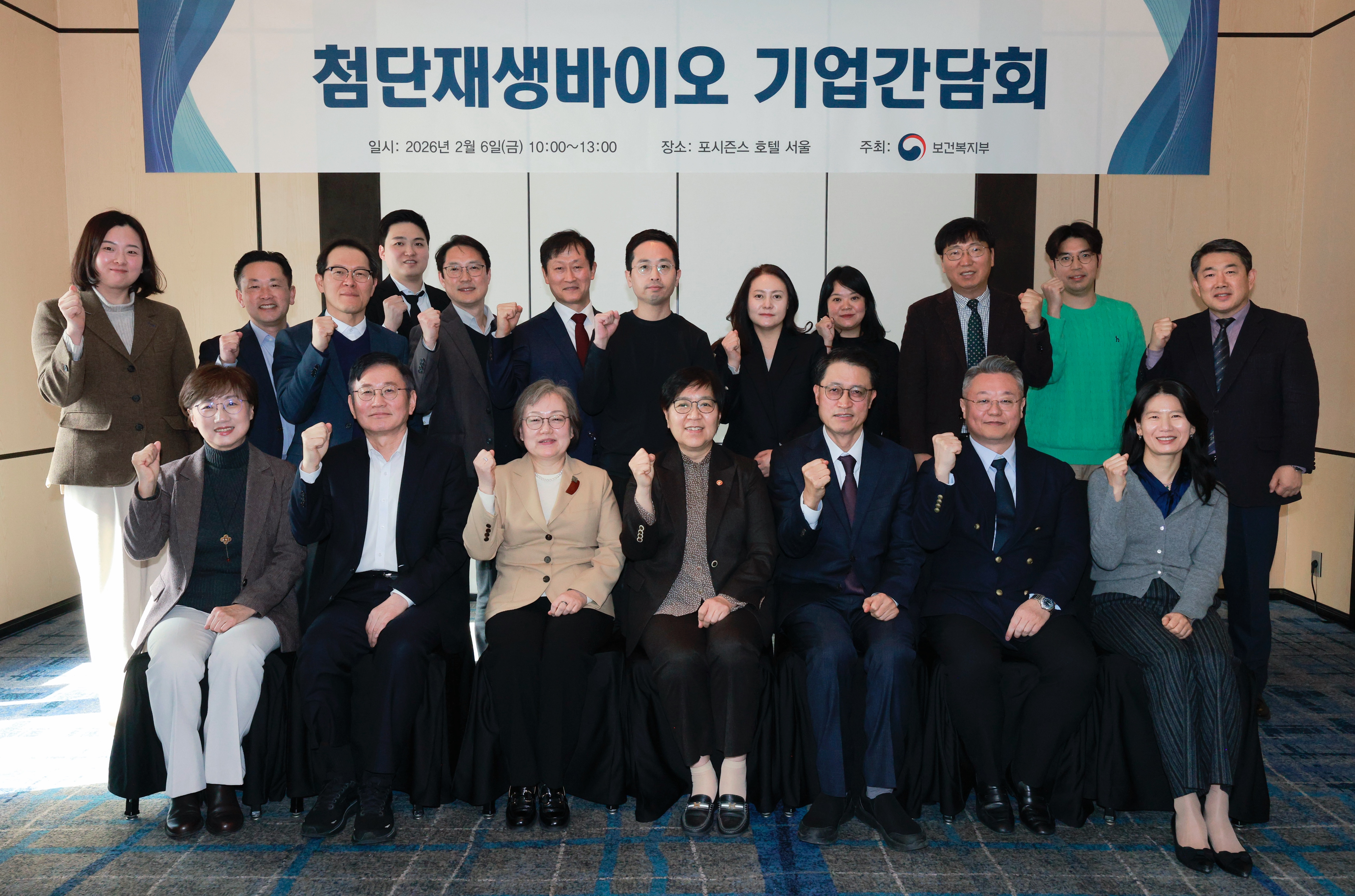보건복지부(장관 정은경)는 6일 오전 서울 포시즌스 호텔에서 첨단재생바이오 기업인들과 간담회를 갖고 산업 발전 방향을 논의했다. 이번 간담회는 지난해 12월부터 이어진 연구자, 환자 대상 간담회에 이은 5번째 릴레이 소통이자, 기업인들을 대상으로 한 두 번째 자리다.