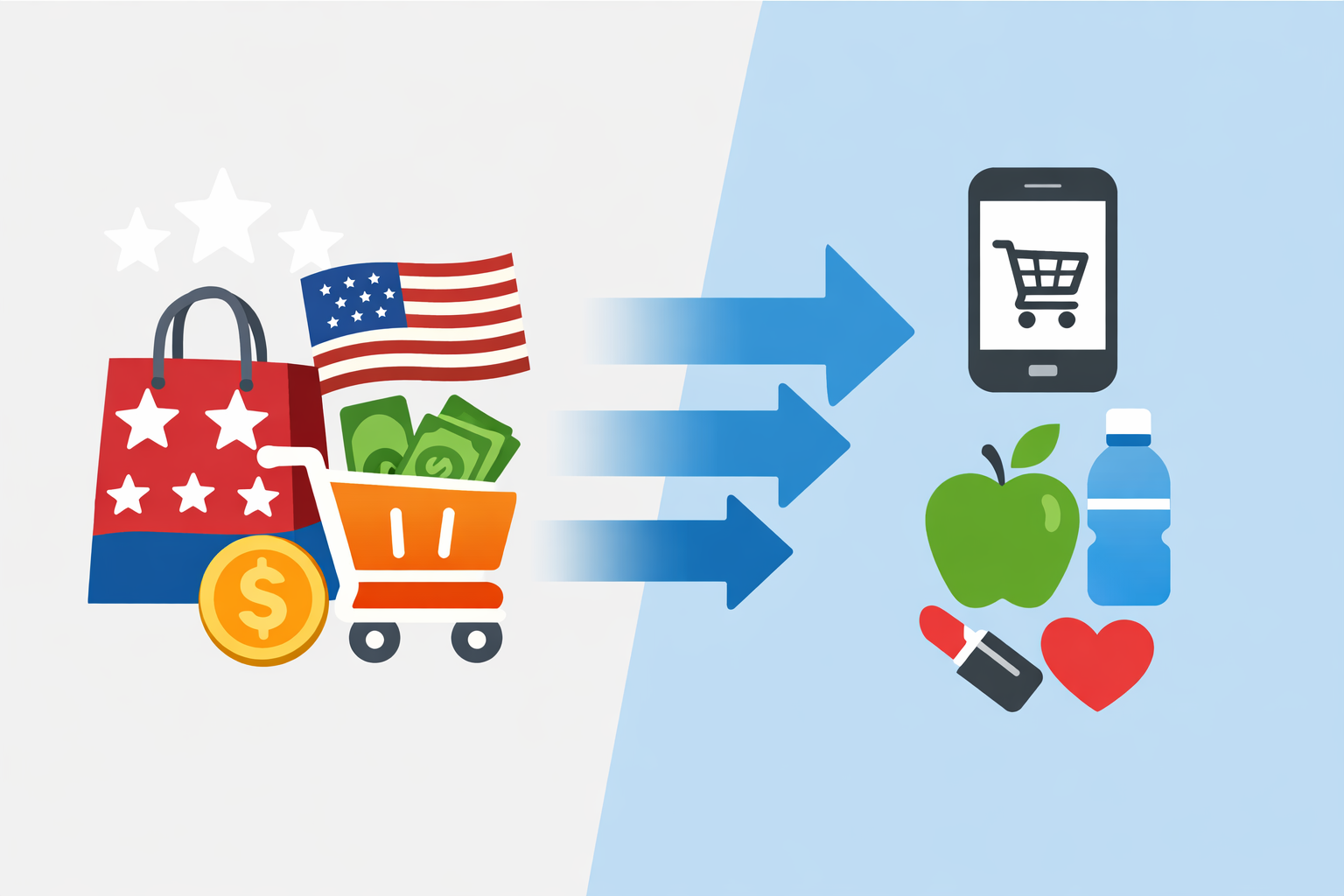 이 변화는 소비가 이동하고 있는 온라인 유통 환경에서 가장 빠르게 나타나고 있다. 이커머스는 이미 미국 소매 매출의 25% 이상을 차지하며 핵심 유통 채널로 자리 잡았고, 최근 1년 매출 증가분의 65% 이상이 온라인에서 발생했다.
