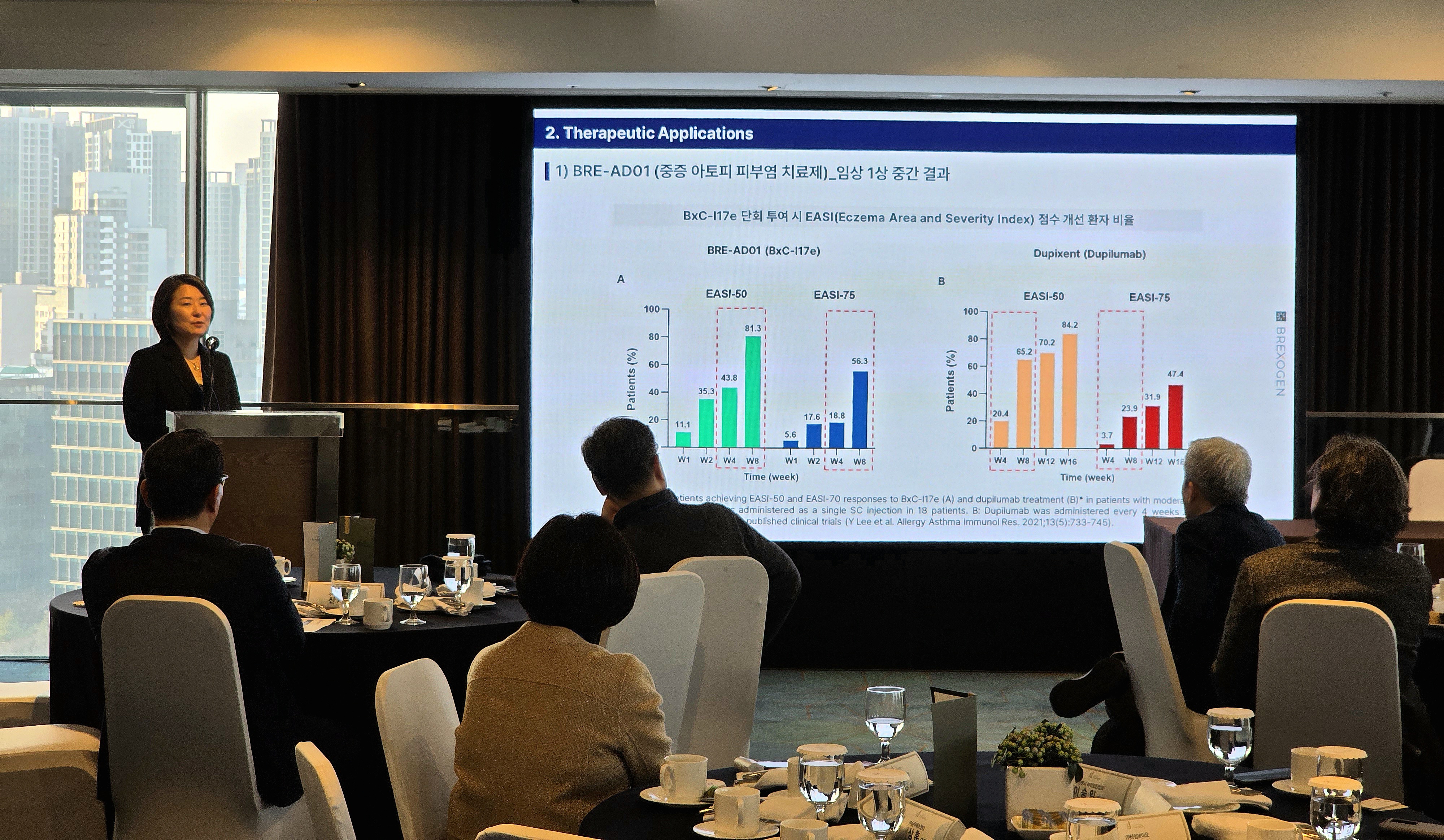 이어 그는 “BRE-AD01은 IL-4와 IL-13을 단순 차단하는 방식이 아니라, IL-4Rα와 IL-13Rα 수용체 발현 자체를 조절하는 기전적 차별성을 갖고 있다”며 “이 특성을 2상에서 보다 명확히 검증하겠다”라고 밝혔다.