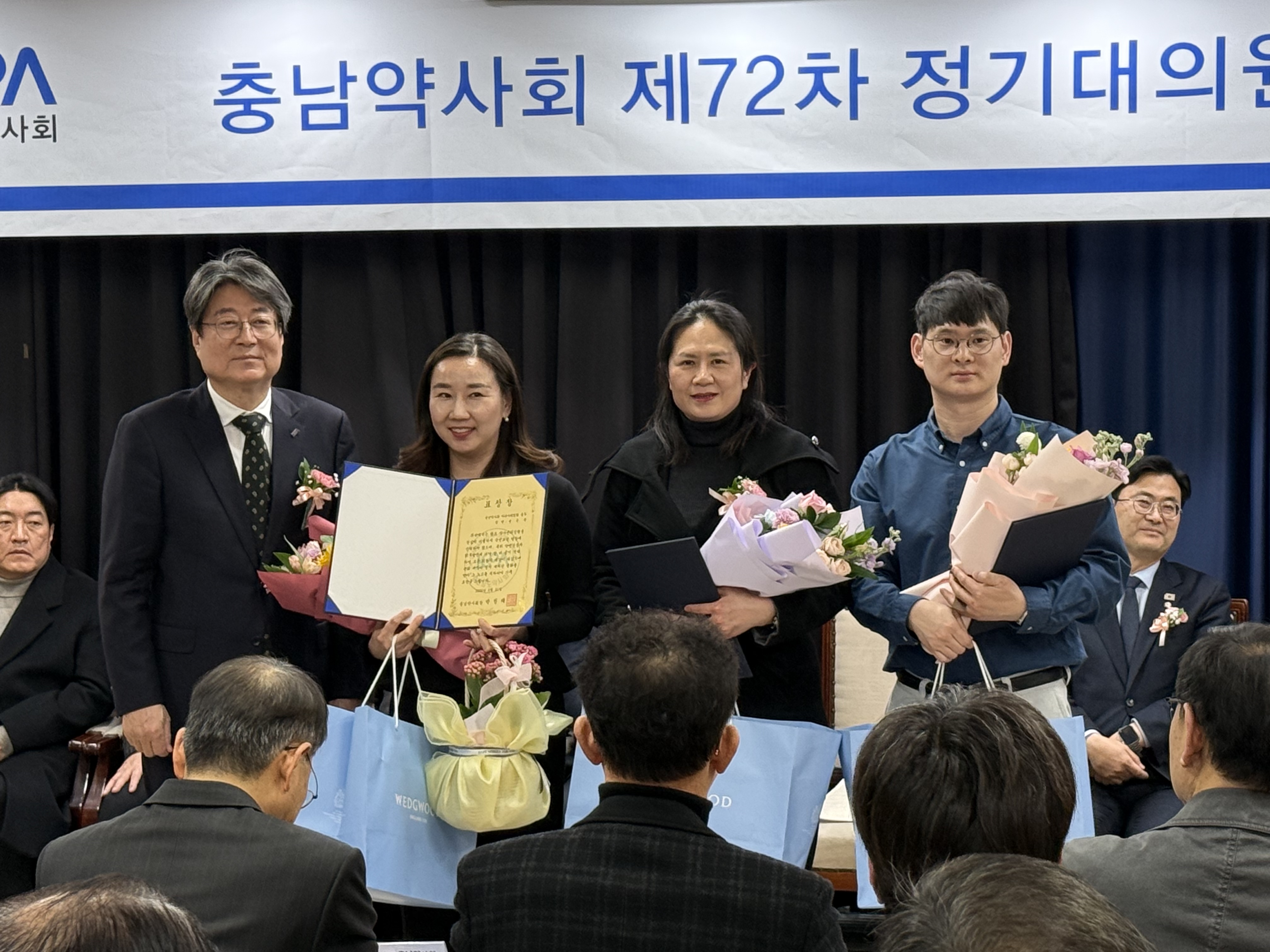 박정래 충남약사회장은 인사말에서 지난 한 해 동안 지역사회와 함께한 주요 성과를 되짚었다. 박 회장은 "무안항공 여객기 참사 현장 봉사약국 운영, 당진·예산 수해 약국 지원, 경북·울산·경남 산불 이재민 성금(3,900만 원) 전달 등 재난 현장에서 따뜻한 연대를 실천했다"고 밝혔다.