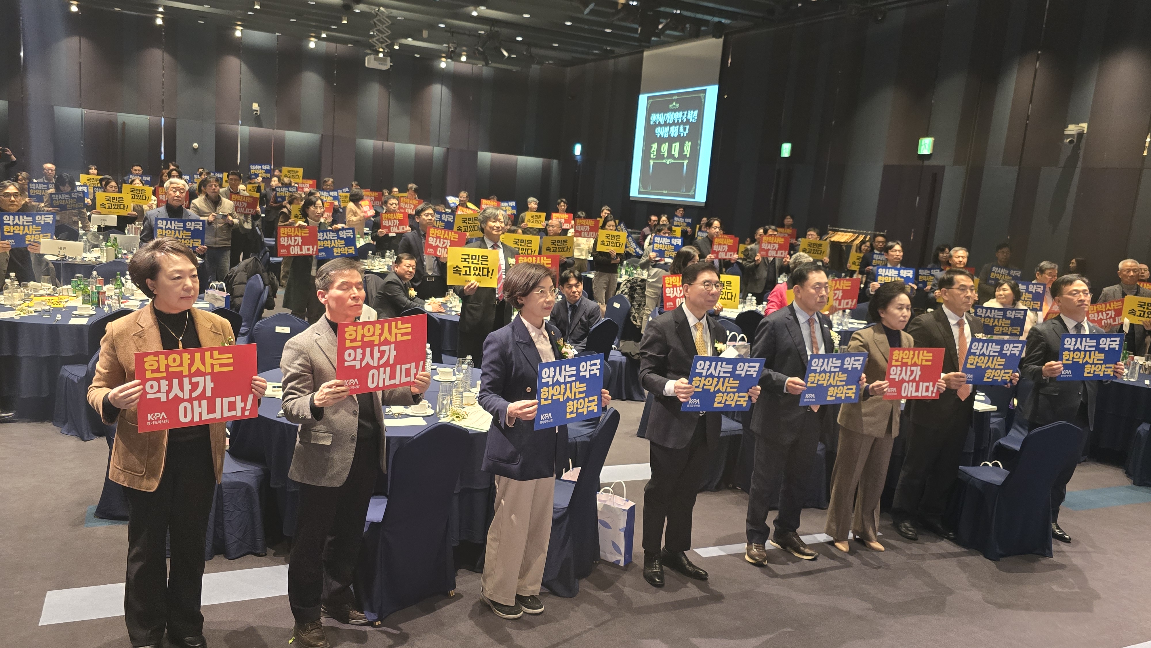 경기도약사회는 2월 21일 라마다프라자 수원호텔 3층 그랜드볼룸에서 제69회 정기대의원총회를 열고 ‘한약사 문제-기형적 약국 척결 약사법 개정 촉구 결의대회’를 개최했다. 대의원들은 결의문을 채택하고 구호를 제창하며 정부와 국회에 제도 정비를 강력히 요구했다.