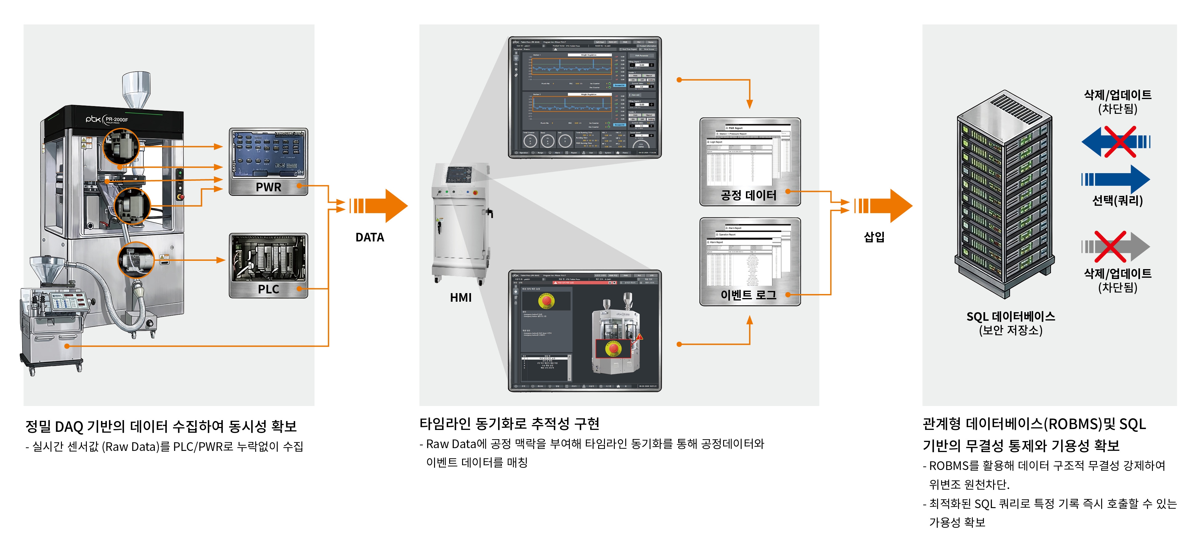 진정한 데이터 완전성은 단순히 소프트웨어 하나를 설치한다고 달성되지 않는다. 이는 ① 정밀한 데이터 수집(Acquisition), ② 시계열 동기화(TimelineSynchronization), ③ SQL 기반 관리(Management)라는 세 가지 데이터 관리 시스템이 유기적으로 결합될 때 비로소 완성된다.
