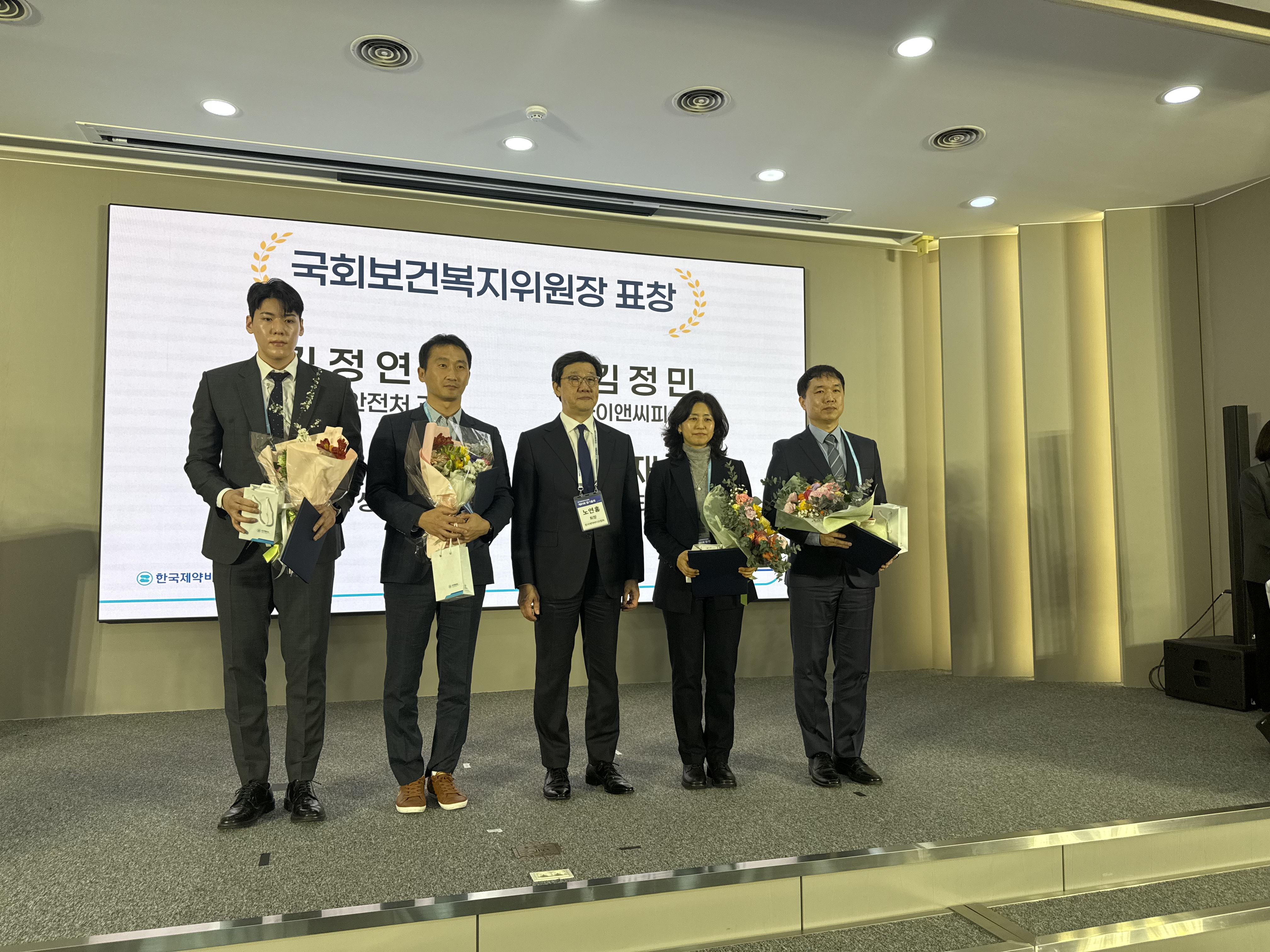 ▲ 국회 보건복지위원장 표창 : 김정연 (식품의약품안전처 과장), 김정민 (아이앤씨피 대표), 김성진 (HK이노엔 생산팀장), 정재원 (한국유나이티드제약 대리)