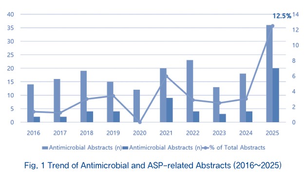 학술 발표 동향에서도 변화가 확인된다. 2025년 한국병원약사회 춘·추계학술대회 접수 초록 160편 중 ASP 관련 주제가 19편(12.5%)을 차지했으며, 항생제 용량·용법 조정, TDM 권고, 주사항생제의 경구 전환, 가이드라인 기반 처방 중재 등 약사 주도의 중재 활동이 다수 보고됐다.