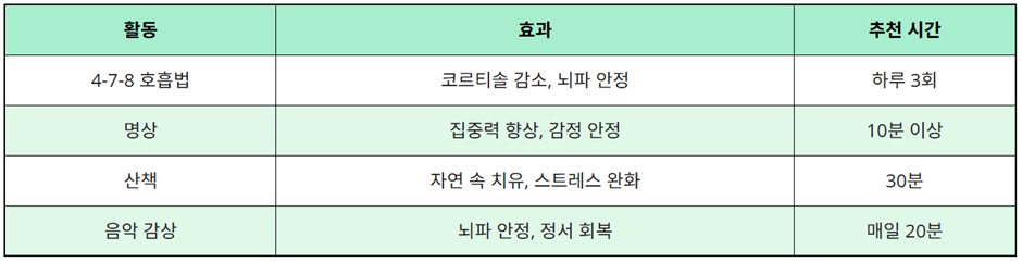 4. 스트레스 관리: 명상, 요가, 심호흡으로 cortisol 감소