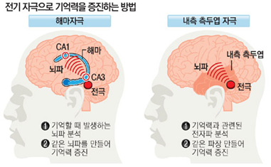 최근 뇌 전기 자극을 통한 기억력 회복 실험이 성공적으로 진행되면서 "기억력도 치료할 수 있다"는 기대가 커지고 있다. 동물실험에서 이미 밝혀졌고, 사람을 대상으로 확인한 시험이 있었다. 뇌에 인위적 전기자극으로 기억력을 향상시킨다는 개념은 이미 50년 전부터 가설로 알려져 왔다. 뇌 세포에 전기자극을 가하면 뇌 활동과 관련이 있는 신경망의 연결고리가 견고해지는 것이 발견됐기 때문이다. 물론, 아직 인간이 뇌에 대한 지식이 제한적이므로 전기자극이 뇌 신경망에 미치는 영향을 먼저 알아내야 한다. 뇌신경 연결부인 '시냅스'를 흥분시키면 흥분성과 억제성 시냅스의 균형이 깨지며 자폐증세가 발현할 수 있으므로 전기자극이 뇌에 미치는 영향은 향후 충분한 연구가 더 필요하다.