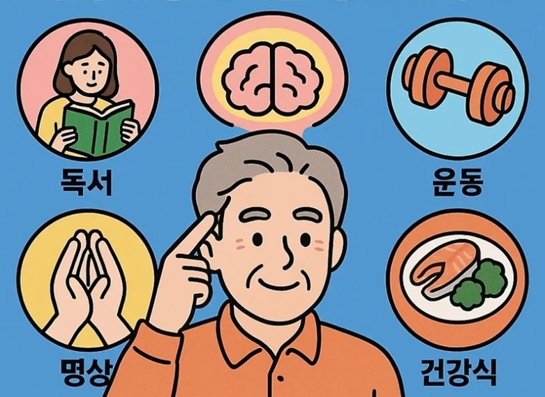 2. 운동: 주 3~5회 30분간 유산소(걷기, 자전거) 운동, 뇌 혈류 증가 촉진