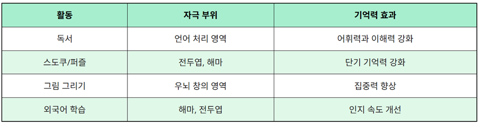 중장년층의 기억력 강화방법은 일반적으로 다음과 같다.