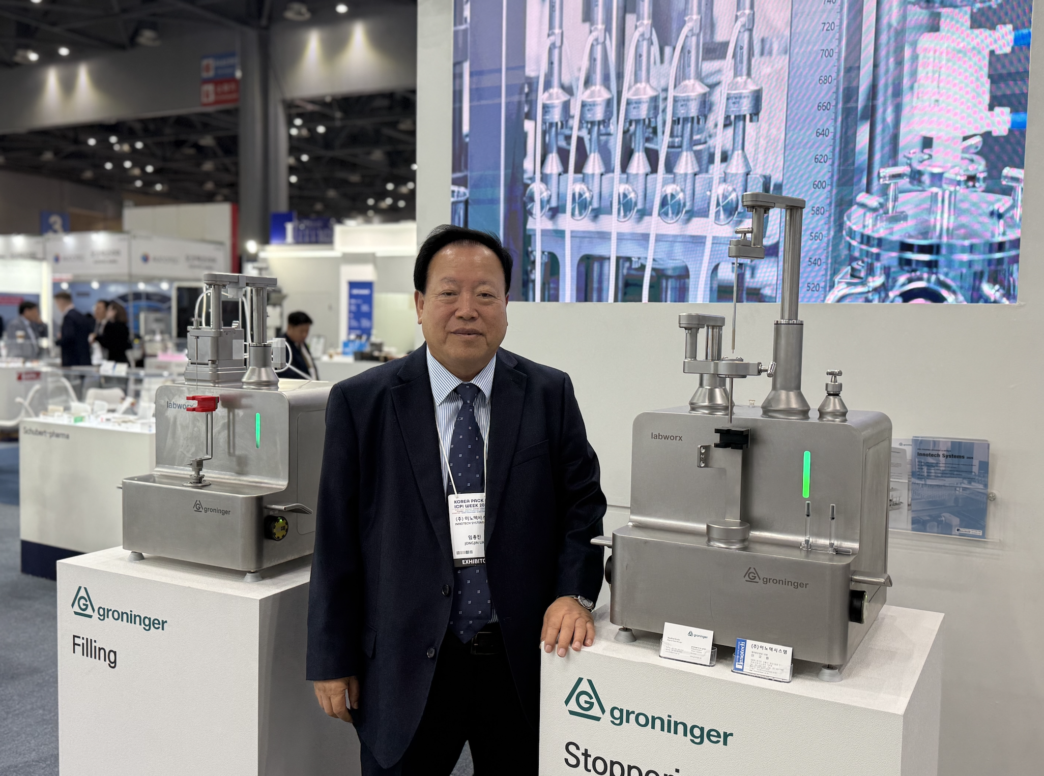 이노텍시스템 전시 부스의 핵심 테마는 제약 공정의 완벽한 통합이다. 임 대표는 "조제, 충전, 검사, 멸균, 포장 등 전체 프로세스를 제약사가 개별적으로 알아보고 구축하려면 큰 고생을 하게 된다"며, 전 공정을 하나로 아우르는 토탈 솔루션 공급의 당위성을 설명했다.