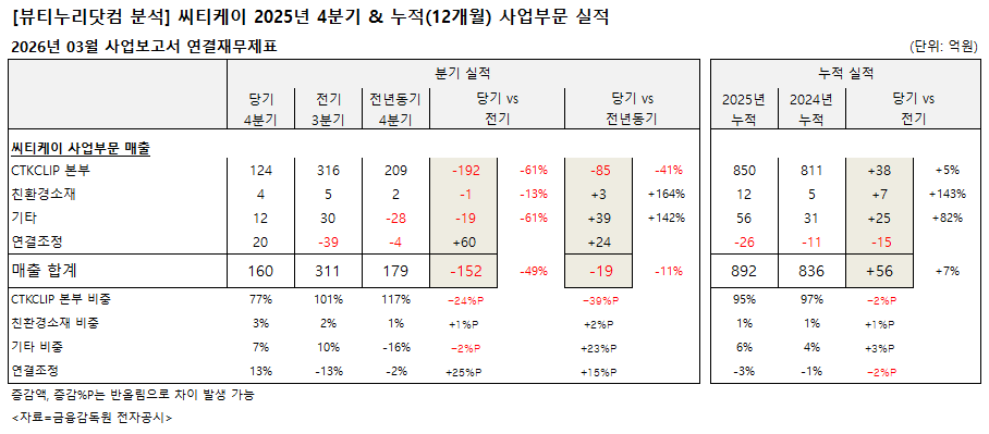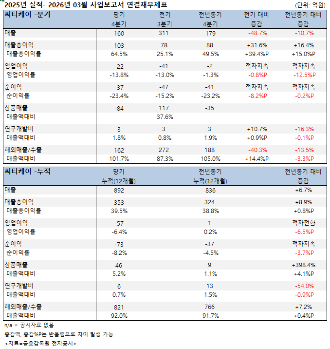 | 09 | [기업분석]씨티케이 , 2025년 73억 순손실 …... |