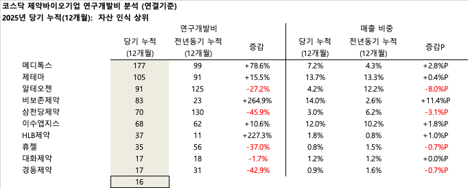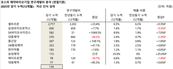 2025년 상장 제약·바이오 기업들이 미래 파이프라인 확보를 위한 견조한 연구개발(R&D) 투자를 이어가며 신약 개발 및 본업에서의 장기적 수익 창출 능력을 입증한 것으로 나타났다.