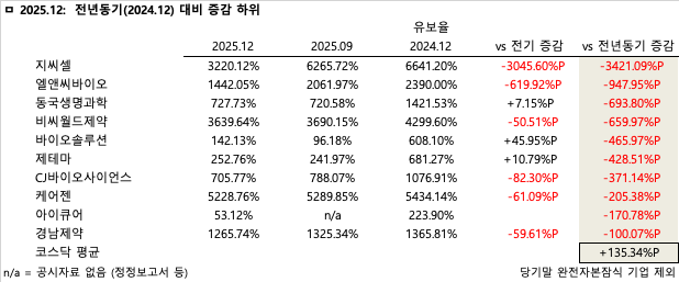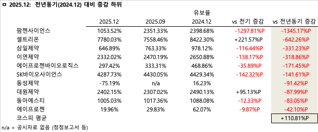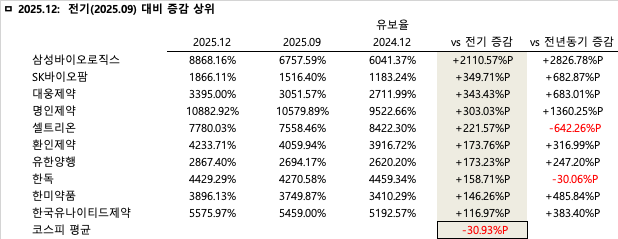 2025년 4분기 기준 상장 제약·바이오 기업들이 안정적인 이익 잉여금 축적을 통해 양호한 재무 건전성을 유지하고 있는 것으로 나타났다.