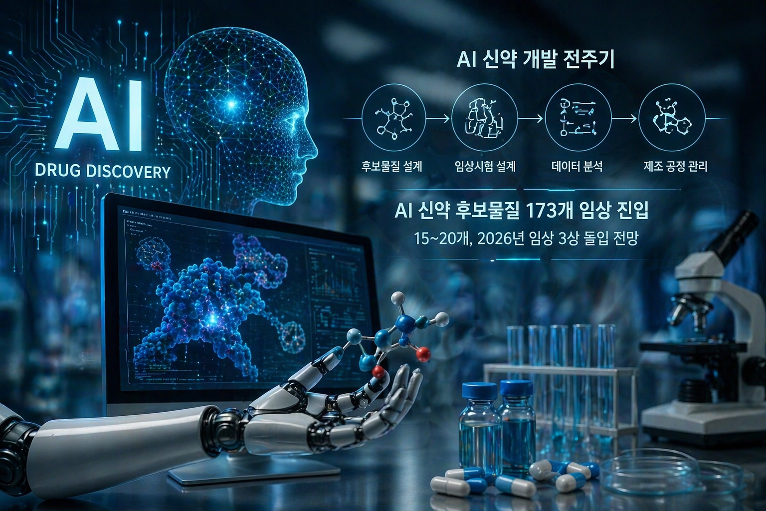 인공지능(AI)이 설계한 신약이 임상 단계에서 성과를 내며, 2026년 첫 허가 승인 가능성이 가시화되고 있다. AI가 후보물질 설계부터 임상, 제조까지 신약 개발 전주기를 재편하는 핵심 변수로 부상하는 모습이다.