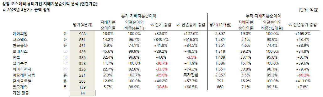 | 07 | [기업분석] 상장 뷰티 기업 2025년 지배지분... |