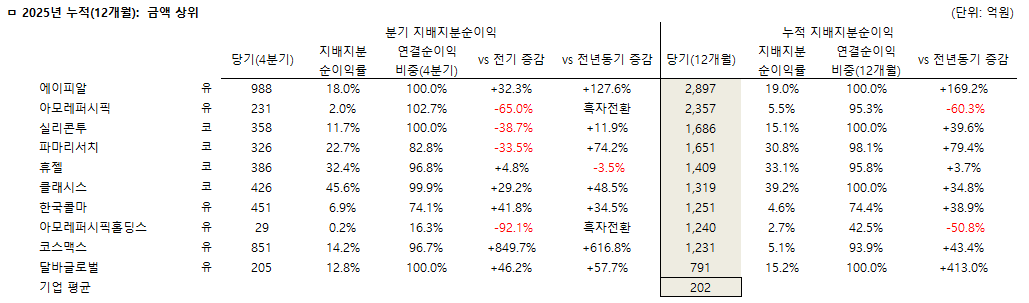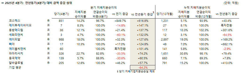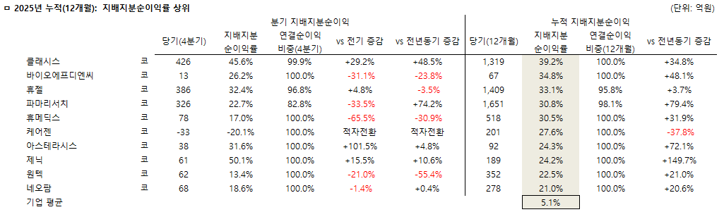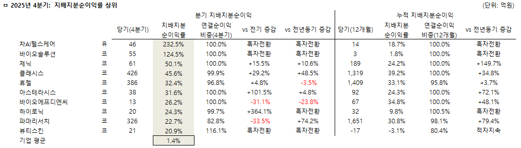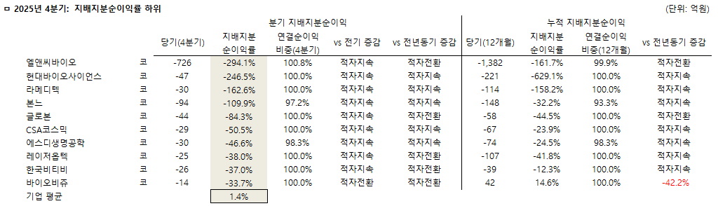 | 04 | 상장 제약·바이오 2025년 지배지분순이익 코... |