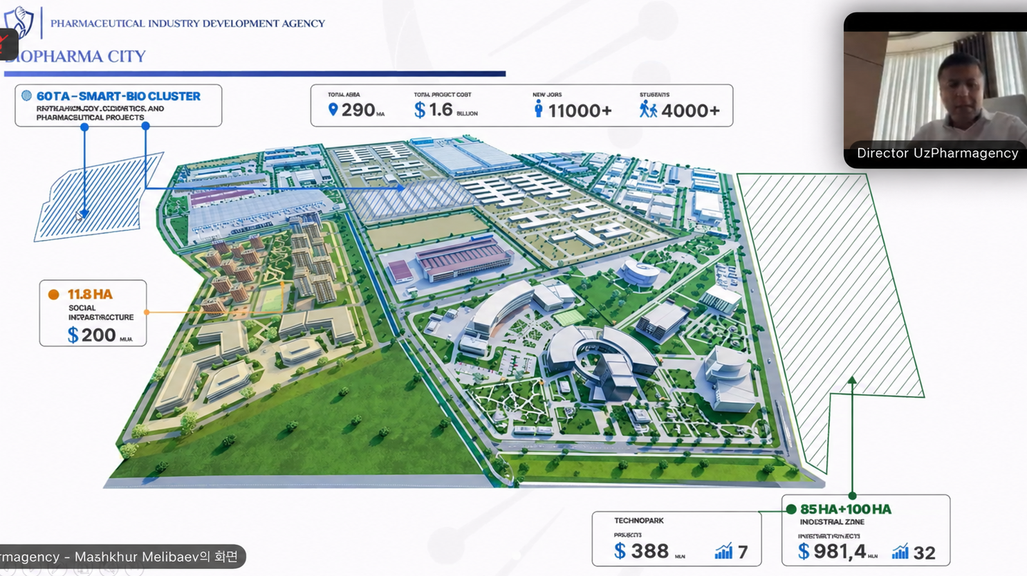 이어 그는 "중앙아시아 인구는 아프가니스탄을 포함해 1억2000만명 이상이며, CIS 인구는 3억명 규모"라며 "우즈베키스탄은 단순한 현지화 거점을 넘어 중앙아시아와 CIS, 기타 국가를 아우르는 제약·화장품 허브가 되기 위해 힘쓸 것"이라고 말했다.