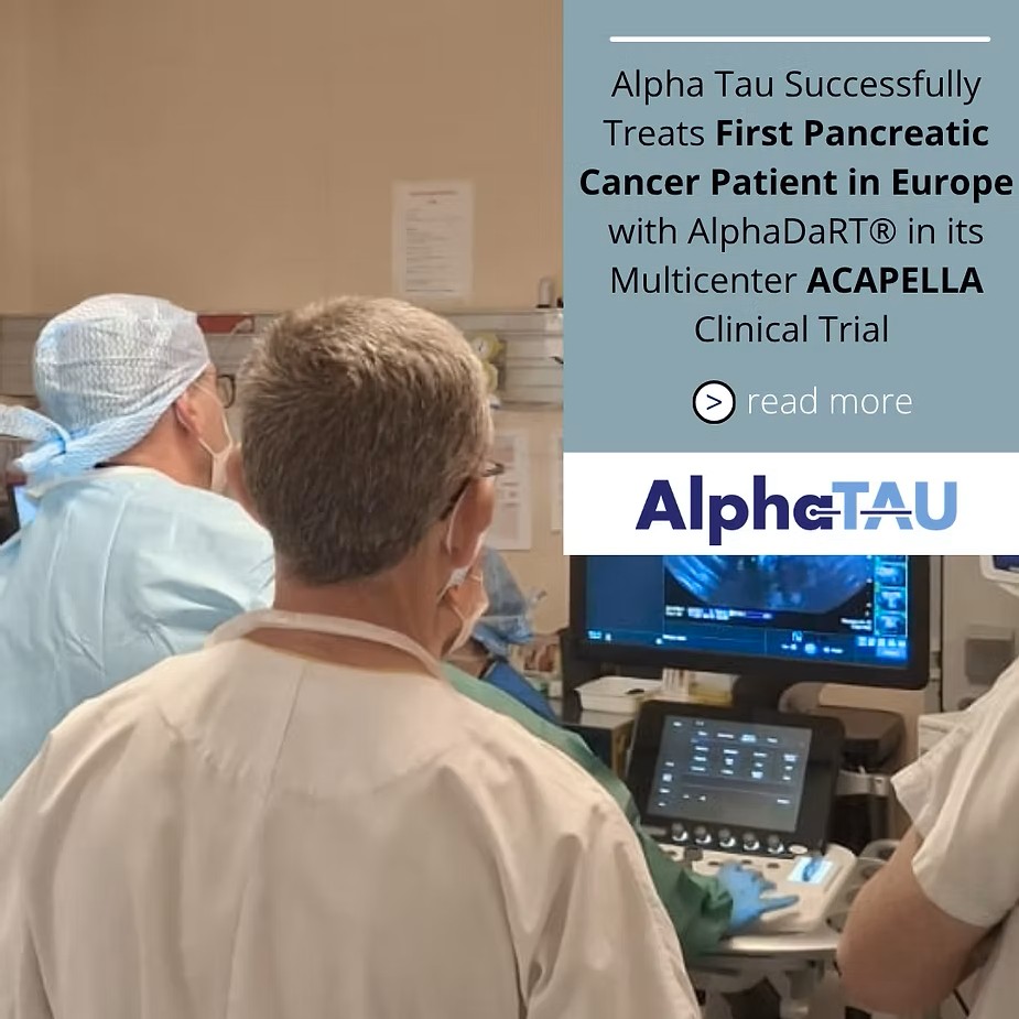 나스닥 상장 종양 치료 전문기업 알파타우 메디컬(Alpha Tau Medical Ltd., Nasdaq: DRTS, DRTSW, 이하 '알파타우')이 자사 알파 방사선 암 치료 기술 '알파다트(Alpha DaRT)'를 활용한 유럽 다기관 췌장암 임상시험 '아카펠라(ACAPELLA, Alpha DaRT for CAncer of the PancrEas in Locally advanced Adenocarcinoma)'에서 첫 환자 치료에 성공했다고 30일 발표했다.