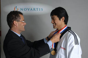 문대성 선수는 이번 홍보대사 선정을 기념하기 위해 최근 노바티스 본사가 있는 스위스 바젤을 방문, 일정 중 한국노바티스 피터마그 사장으로부터 홍보대사 선정을 기념하는 금메달을 받았다.