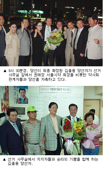 ◆ 김충용 당선자 약력 1939년 강원도 영월군 출생 경희대 약학과 졸업 고려대 정책대학원 수료 종로구약사회장 역임 한나라당 서울시지부 부위원장 現 종로구청장. 대한약사회 이사 바르게살기운동 중앙협의회 부회장 |