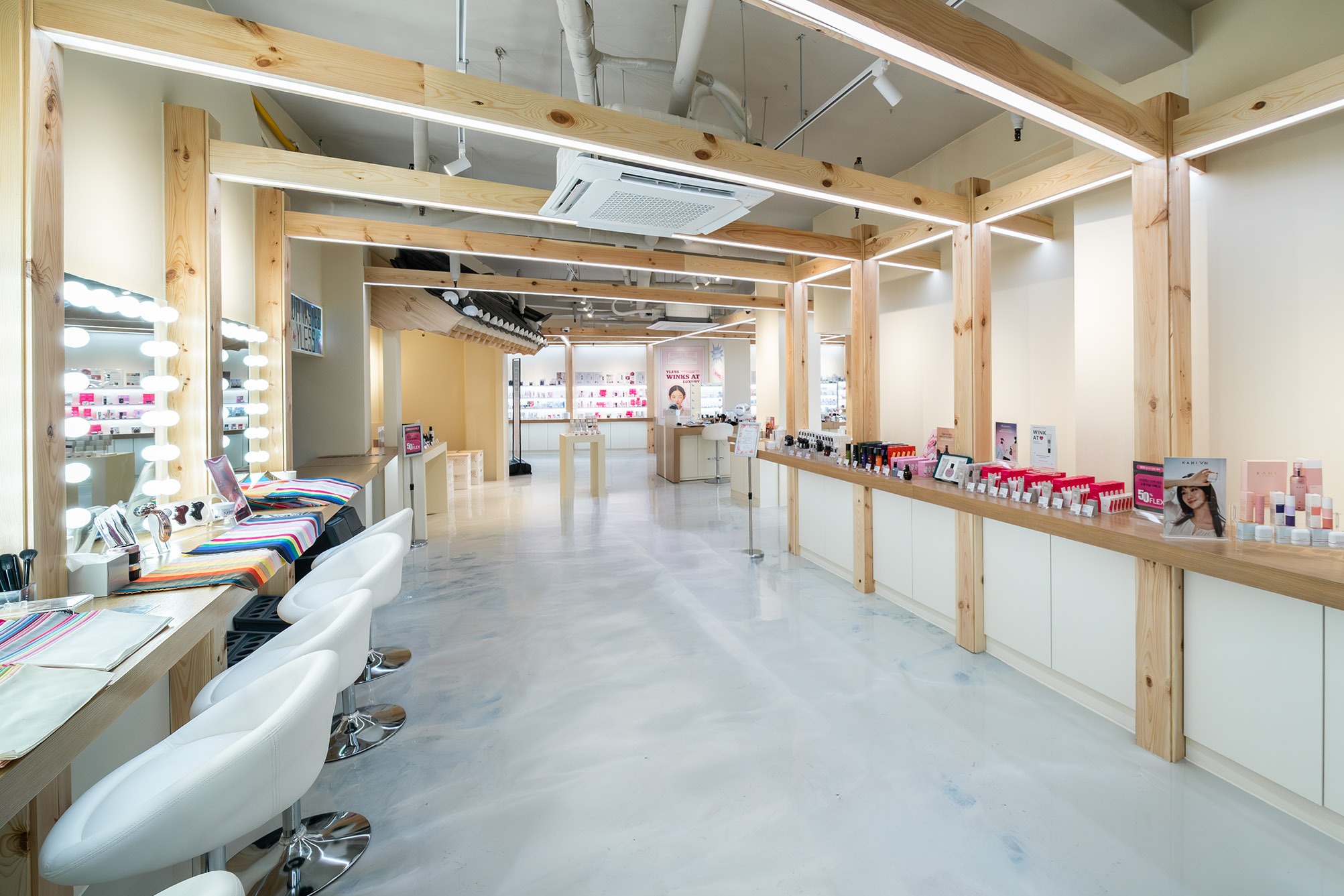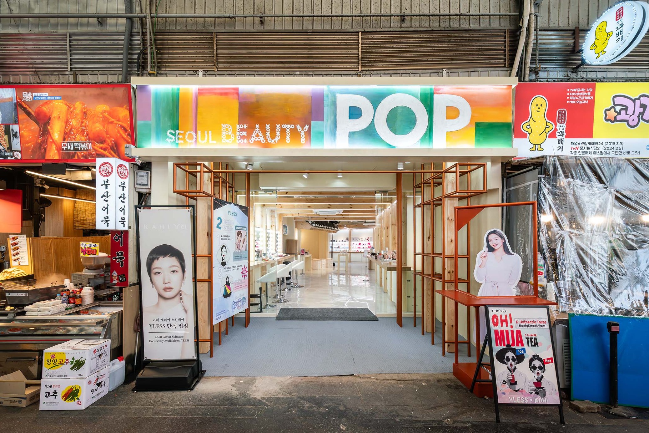 매장은 ‘장터’를 콘셉트로 기획됐다. 한옥 요소를 적용하고 오미자차 등 전통 음료를 제공해 시장 특유의 활기와 한국적 정서를 담았다. 광장시장 북문 초입에 자리해 유동 인구가 많은 점도 특징이다. 방문객은 전통 시장 환경 속에서 1500여개 K-뷰티 인디 브랜드 제품을 한자리에서 경험할 수 있다.