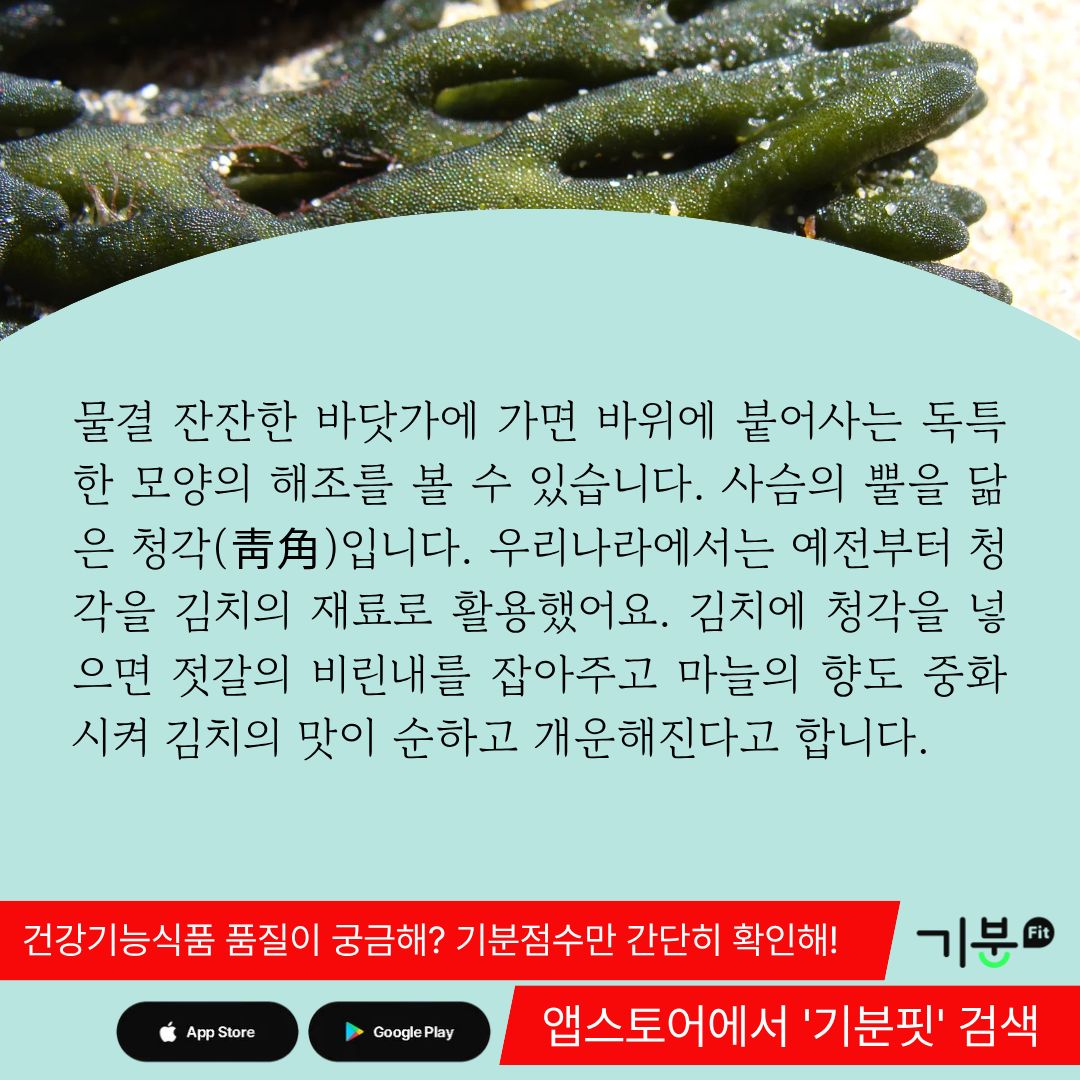 실제로 김치에 청각을 넣으면 젓갈의 비린내를 잡아주고 마늘의 향도 중화시켜 김치의 맛이 순하고 개운해진다.