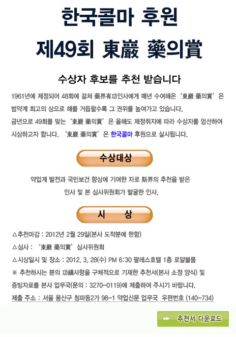 제49회 \'동암 약의상\' 후보자 추천
