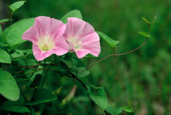 ▲ 덕성여자대학교 명예교수/한국사진작가협회회원메꽃은 우리나라 어디든지 밭이나 들 또는 인가주변에서 쉽게 목격할 수 있는 야생화여서 매우 친숙한 꽃 중의 하나이다. 6-8월 한 여름에 잎겨드랑이에서 유난히 길게 자라나온 꽃대에 깔때기 모양의 연한 분홍색 꽃을 피우는데 언 듯 보면 나팔꽃처럼 생겨서 혼동하기 쉽다.