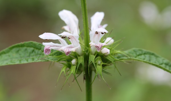 식물전체가 갈색 털로 덮여있고 줄기는 네모지고 60-90 센티미터 정도 높이로 곧게 자라며 가지는 치지 않는다. 잎은 서로 마주나며 잎줄기가 있고 긴 타원형으로 커다란 톱니가 있다. 줄기에 층을 이루며 꽃이 피는데 각 층에 5-6 송이 꽃이 둥글게 돌려난다.