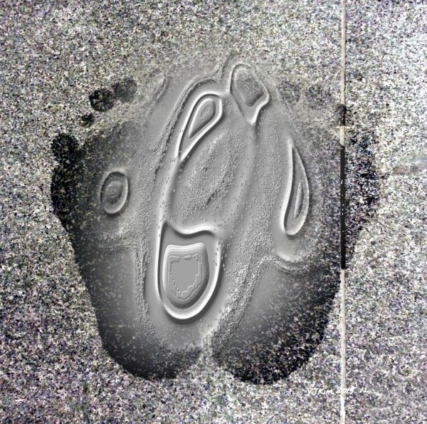 목욕탕 바닥에 맨발의 도장을 찍었다.