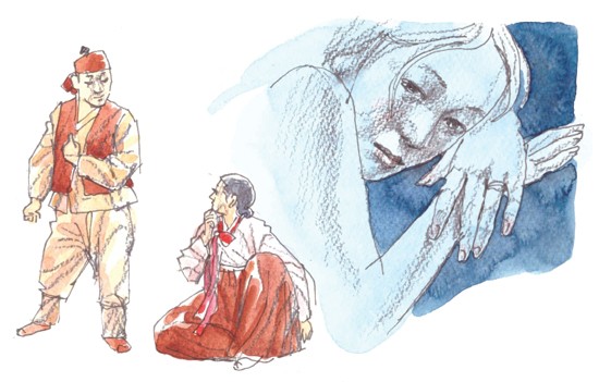 달콤한 사내 말을 철석같이 믿는 부용이 한심하다는 눈치다. 부용은 긴 말을 하지 않으려 한다. 현찰 외엔 믿으려 하지 않는 설매에게 구구한 설명을 한들 별 효과가 없어서다. 노복(奴僕·사내종)이 나귀에 싣고 온 짐을 풀어 평양에서 가져 온 설매 선물을 건넸다. “어머니 이것은 나이 많은 대감 사위가 장모에게 보낸 선물이에요... 중국 사신한테 선물로 받은 것인데 어머니에게 드리는 것이래요.” 원앙 한 쌍이 수놓아진 비단 한 필이다.