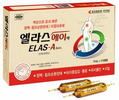 엘라스에이액은 트록세루틴 성분 함유량이 3,500mg으로 기존의 정제나 캡슐제 제품(300mg)에 비해서 10배 이상 높다.
