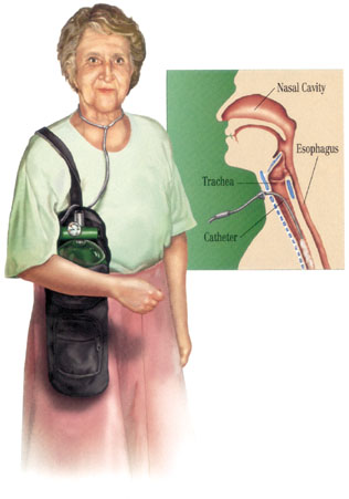 오랜 기간동안 높은 유속의 산소를 필요로 하는 환자에게는 산소가 곧바로 기관에 도달할 수 있도록 `transtracheal oxygen catheter'라 불리우는 얇은 튜브를 목 속에 투입한다.