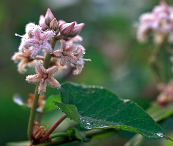 꽃잎을 아래로 저치면 암술 대 밑에 수술이 붙어 있는 것을 관찰 할 수 있다. 암술은 성숙하면 암술머리가 2개로 갈라지며 동종교배를 피하기 위해 수술과 동 떨어지게 배치했음을 알 수 있다. 줄기나 잎을 자르면 우유 같은 흰 즙액이 나온다. 이 즙은 사마귀가 떨어질 정도로 강하며 곤충이 먹으면 죽을 정도로 강한 독성을 갖고 있다.