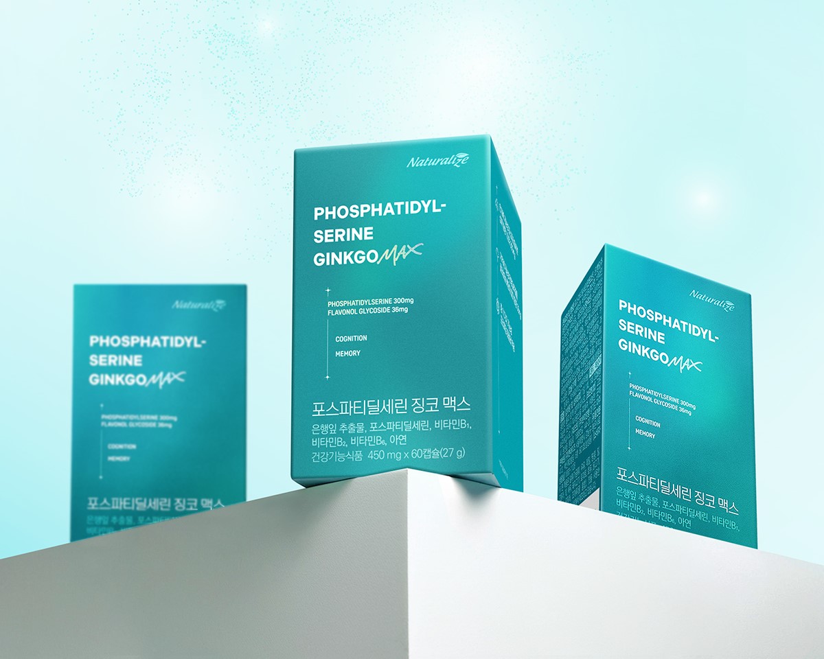 ‘포스파티딜세린 징코 맥스’는 두뇌 건강을 위한 포스파티딜세린과 은행잎 추출물을 국내 포스파티딜세린 함유 제품 중 최대 함량으로 담았다. 인지력 개선에 도움을 줄 수 있는 포스파티딜세린은 최대 함량인 300mg까지 채웠으며, 기억력 개선 기능성 원료인 은행잎 추출물은 36mg 함유했다.