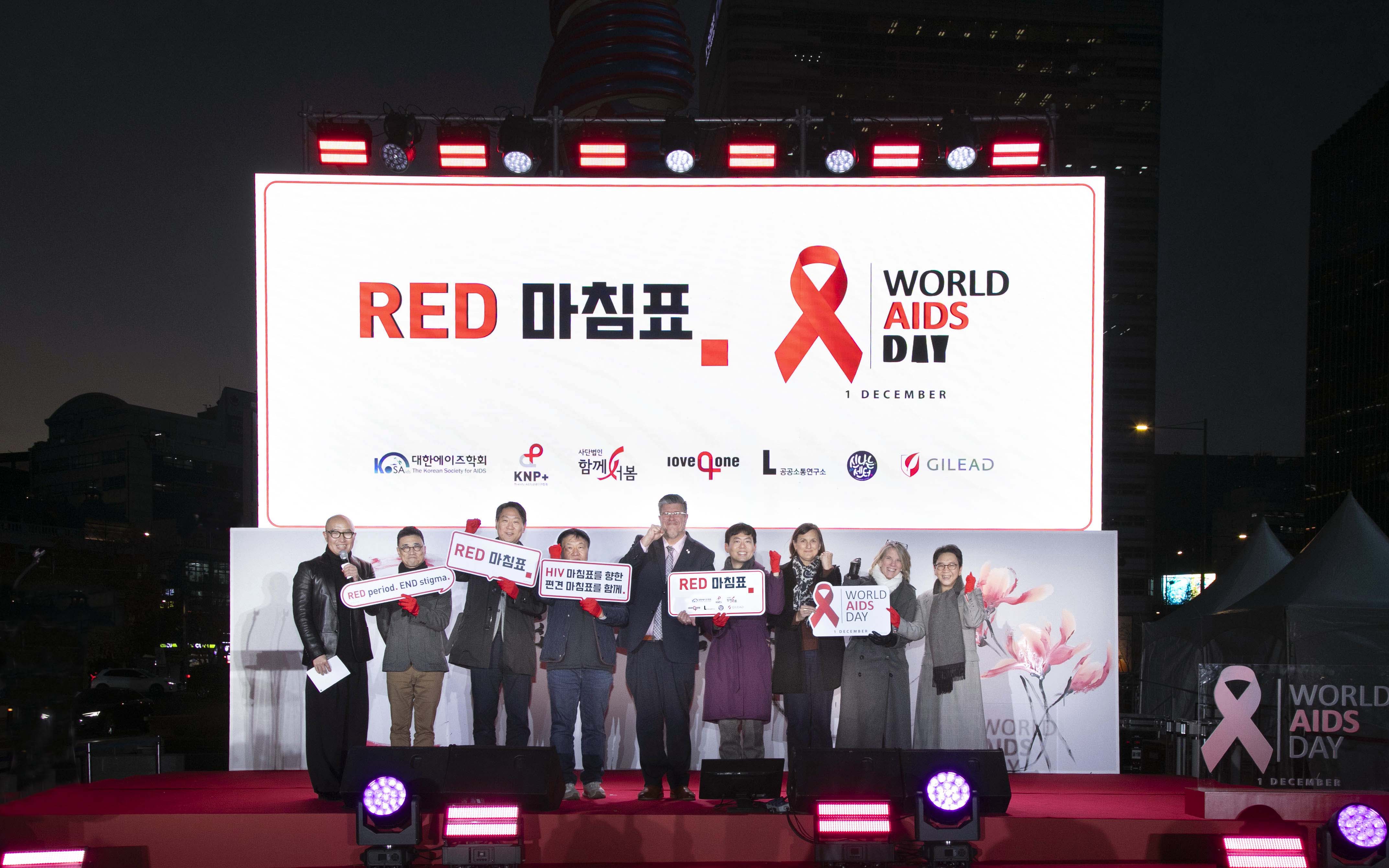 이날 행사에서는 협의체 대표로 국립중앙의료원 감염내과 진범식 교수, 감염인 단체 KNP+ 손석수 대표, 신나는센터 김승환 상임이사, 공공소통연구소 이종혁 소장, 길리어드 사이언스 코리아 최재연 대표이사가 무대에 올라 HIV 차별과 편견 종식을 위한 다짐과 의지를 표명했다. 뿐만 아니라 지난 10월부터 운영 중인 네이버 해피빈 굿액션 페이지에 모인 시민들의 응원 메시지를 함께 낭독하며, 레드 마침표 캠페인의 참여를 촉구했다.