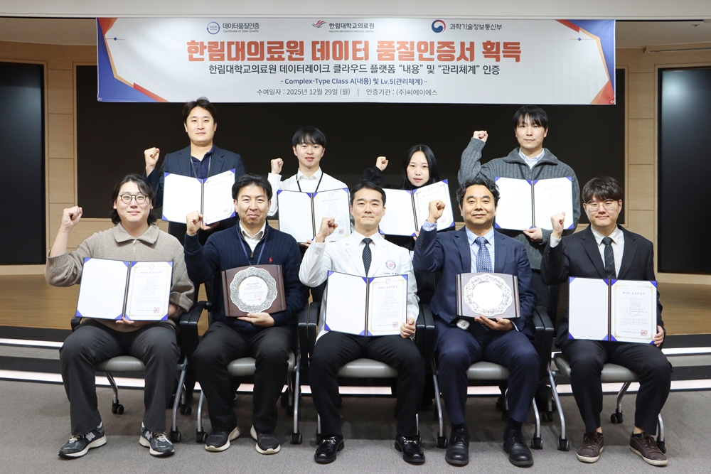 한림대학교의료원(의료원장 김용선)이 국내 최초로 의료데이터 ‘내용’과 ‘관리체계’ 두 부문에서 모두 최고 등급 인증을 동시에 획득했다.