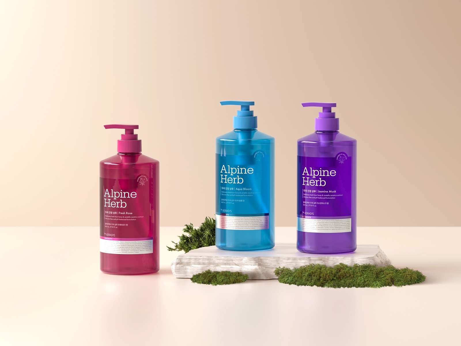 알파인 허브 샴푸·컨디셔너에는 미네랄이 풍부한 초정 탄산수와 시카 성분을 적용해 민감한 두피를 진정시키고, 손상된 모발에 윤기를 더해준다. 샴푸는 풍성한 거품을 통해 저자극 딥 클렌징을 돕고, 두피의 과도한 유분을 깨끗하게 세정한다. 컨디셔너는 무실리콘 처방에도 부드러운 사용감을 유지한 것이 특징이다.