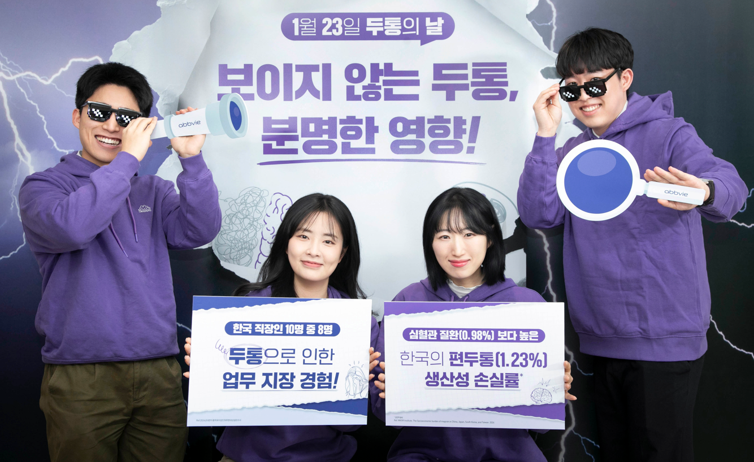 한국애브비(대표이사 강소영)는 1월 23일 두통의 날을 맞아 편두통에 대한 이해를 높이고 일상 및 업무 환경에서 편두통이 미치는 영향을 조명하는 사내 인식 제고 캠페인을 지난 22일 진행했다고 밝혔다.