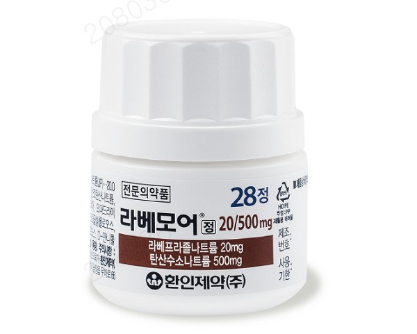 지난 달 출시한 라베모어정 10/500mg에 이어 유효성분인 라베프라졸나트륨 함량을 20mg으로 높여 출시한 제품으로, 점막 손상이 확인된 중증 환자까지 사용이 가능해졌다는 것이 특징이다.